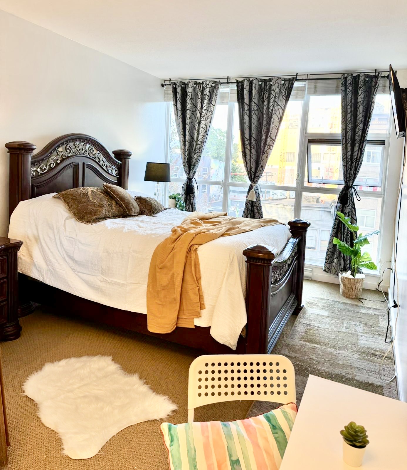 This fully furnished bedroom with a private bathroom is available for rent at 189 National Avenue, located in the vibrant Downtown area of Vancouver. The room offers a cozy and private space.